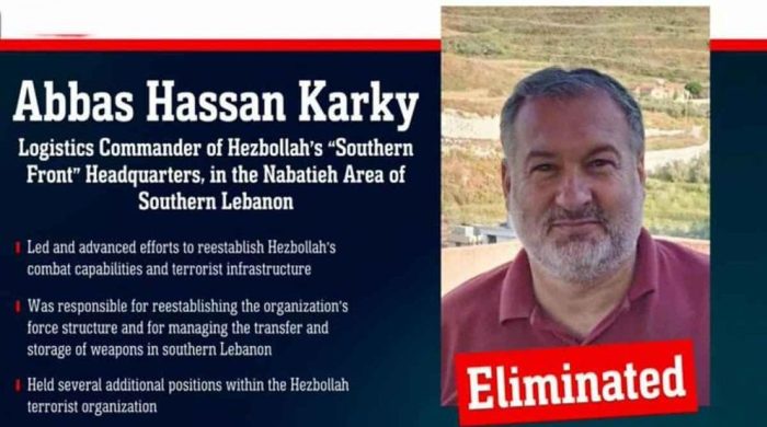 নিউজ ডেস্কঃ দক্ষিণ লেবাননে ড্রোন হামলা চালিয়ে দেশটির শক্তিশারী সশস্ত্র গোষ্ঠী হিজবুল্লাহর দক্ষিণ ফ্রন্ট সদর দপ্তরের লজিস্টিক প্রধান কমান্ডার আব্বাস হাসান কার্কিকে হত্যার দাবি করেছে ইসরাইলি সেনাবাহিনী। শুক্রবার (২৪ অক্টোবর)