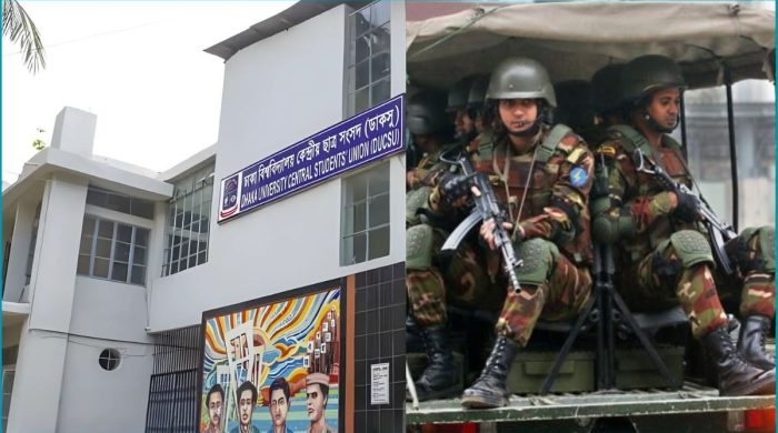 নিউজ ডেস্কঃ ঢাকা বিশ্ববিদ্যালয় কেন্দ্রীয় ছাত্র সংসদ (ডাকসু) নির্বাচনের দিনে সেনাবাহিনী স্ট্রাইকিং ফোর্স হিসেবে দায়িত্ব পালন করবে। ভোটগ্রহণ শেষে ফল ঘোষণার সময়ও উপস্থিত থাকবেন সেনাসদস্যরা। মঙ্গলবার (২৬ আগস্ট) রিটার্নিং কর্মকর্তাদের