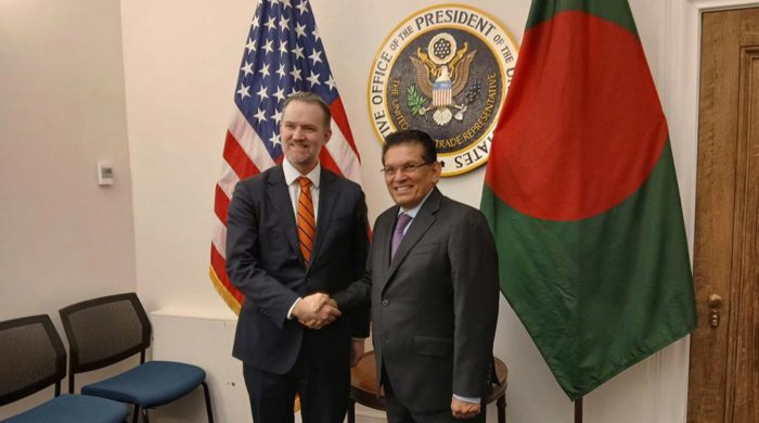 যুক্তরাষ্ট্রের ওয়াশিংটন ডিসিতে মার্কিন বাণিজ্য প্রতিনিধি (ইউএসটিআর) রাষ্ট্রদূত জেমিসন গ্রিয়ারের সঙ্গে বৈঠক করেছেন বাংলাদেশের জাতীয় নিরাপত্তা উপদেষ্টা ড. খলিলুর রহমান। বৈঠকে যুক্তরাষ্ট্রকে পারস্পরিক শুল্ক সম্পূর্ণ প্রত্যাহারের প্রস্তাব দেন খলিলুর রহমান।