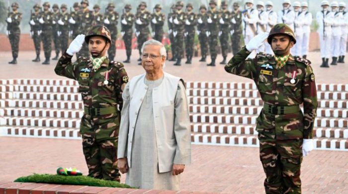 মহান বিজয় দিবস উপলক্ষে জাতীয় স্মৃতিসৌধে বীর শহীদদের প্রতি গভীর শ্রদ্ধা নিবেদন করেছেন অন্তর্বর্তীকালীন সরকারের প্রধান উপদেষ্টা প্রফেসর ড. মুহাম্মদ ইউনূস। মঙ্গলবার (১৬ ডিসেম্বর) সকাল ৬টা ৫৭ মিনিটে তিনি স্মৃতিসৌধে