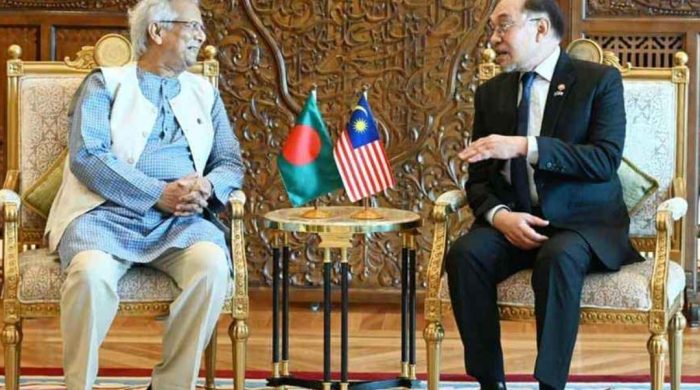নিউজ ডেস্কঃ মালয়েশিয়ার প্রধানমন্ত্রী আনোয়ার ইব্রাহিমের সঙ্গে মালয়েশিয়ার রাজধানী কুয়ালালামপুরে দ্বিপক্ষীয় বৈঠক করেছেন অন্তর্বর্তী সরকার প্রধান উপদেষ্টা ড. মুহাম্মদ ইউনূস। মঙ্গলবার (১২ আগস্ট) সকালে সফরের দ্বিতীয় দিনে পুত্রজায়ায় নিজ কার্যালয়ে