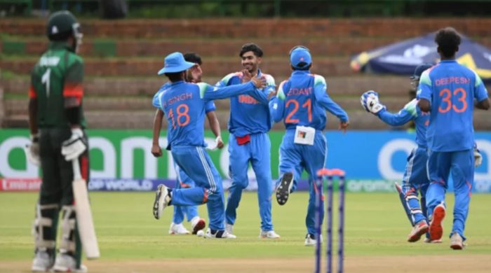 খেলা ডেস্ক রিপোর্টঃ আল ফাহাদের পাঁচ উইকেট ও আজিজুল হাকিম তামিমের ফিফটি সত্ত্বেও বিশ্বকাপের প্রথম ম্যাচে হার দিয়ে শুরু করেছে বাংলাদেশ অনূর্ধ্ব-১৯ দল। বৃষ্টির কারণে ডাকওয়ার্থ–লুইস–স্টার্ন (ডিএলএস) পদ্ধতিতে ভারতের কাছে