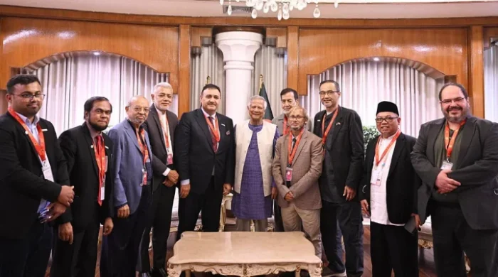 নিউজ ডেস্কঃ মুসলিমবিশ্বের উন্নয়নে ইসলামিক এনজিওগুলোকে আরো বেশি করে সামাজিক ব্যবসায় এগিয়ে আসার আহ্বান জানিয়েছেন প্রধান উপদেষ্টা ড. মুহাম্মদ ইউনূস। রোববার (৬ জুলাই) রাষ্ট্রীয় অতিথি ভবন যমুনায় মুসলিমবিশ্বের বিভিন্ন দেশের
